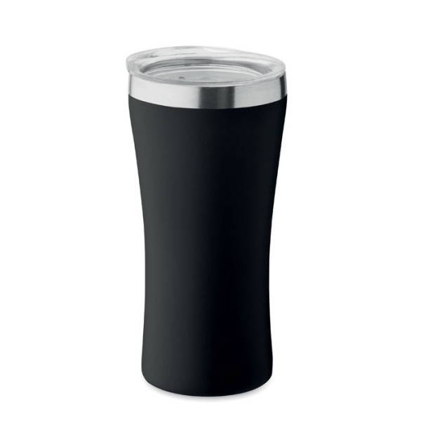 Kleiner, doppelwandiger Becher aus recyceltem Edelstahl (90% recycelter Edelstahl und 10% Edelstahl). Trinköffnung im Deckel aus transparentem PP. Füllmenge: 160 ml.