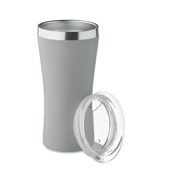 Kleiner, doppelwandiger Becher aus recyceltem Edelstahl (90% recycelter Edelstahl und 10% Edelstahl). Trinköffnung im Deckel aus transparentem PP. Füllmenge: 160 ml.