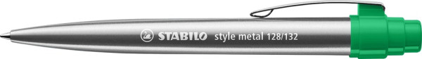 COOLER STYLE IM METALLIC-LOOK. Stylischer Druckkugelschreiber aus silbernem Metall mit Jumbomine und komfortablem, extra breitem Drücker. Edler Metall-Schaft kombinierbar mit Clip-Drücker-Einheit in 8 verschiedenen Farben.