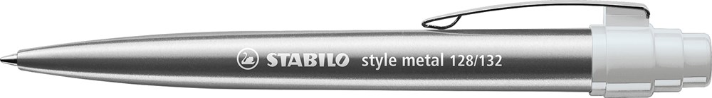 COOLER STYLE IM METALLIC-LOOK. Stylischer Druckkugelschreiber aus silbernem Metall mit Jumbomine und komfortablem, extra breitem Drücker. Edler Metall-Schaft kombinierbar mit Clip-Drücker-Einheit in 8 verschiedenen Farben.