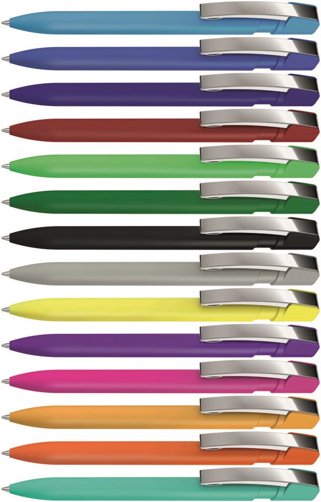 Druckkugelschreiber mit Softtouch-Gehäuse und flexiblem Metallclip. mehr