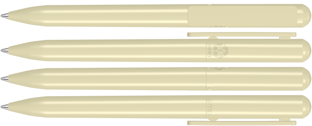 Drehkugelschreiber aus recyceltem PET-Material mit gedeckt glänzendem Gehäuse.