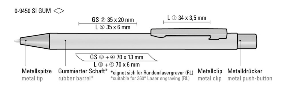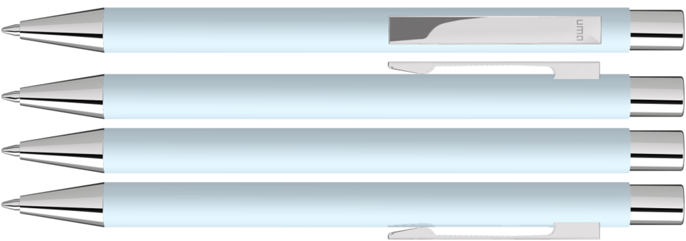 Metall-Druckkugelschreiber mit Softtouch-Gehäuse, Metallclip, Metallspitze und Drücker silber glänzend.