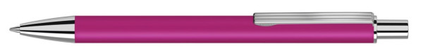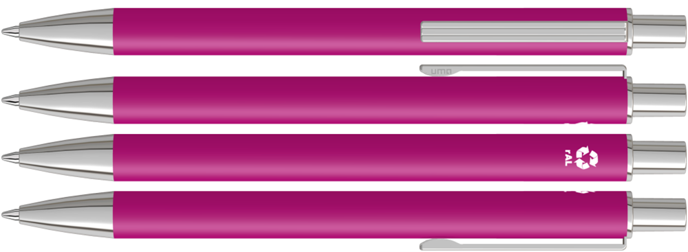 Metall-Druckkugelschreiber mit matter Oberfläche aus recyceltem Aluminium. Metallclip mit eingelassenen Rillen, Metallspitze und Drücker in silber glänzend.