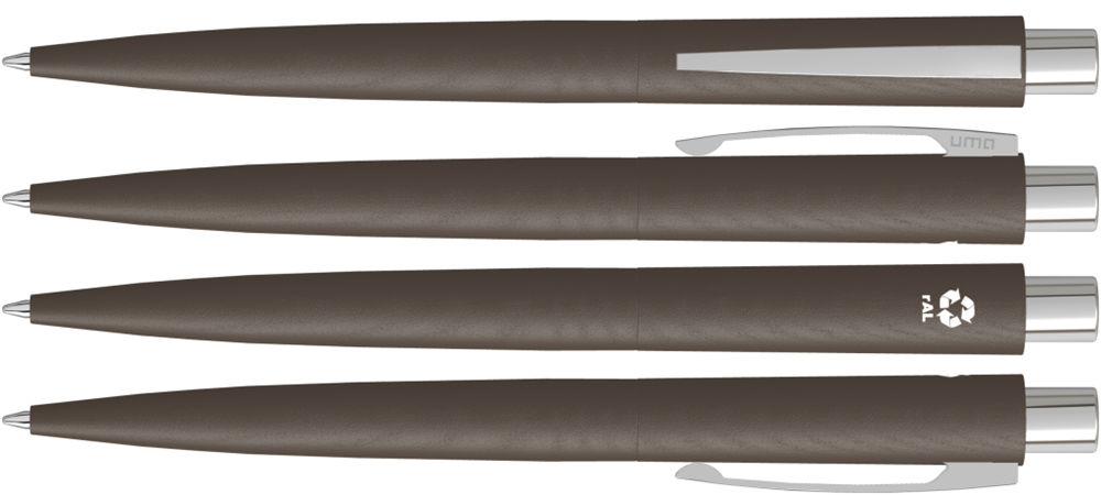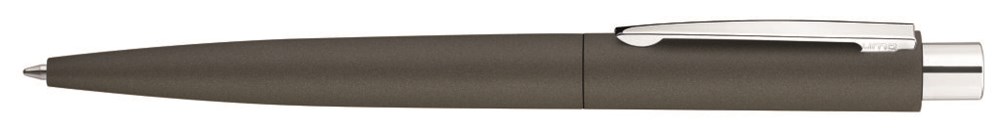 Metall-Druckkugelschreiber mit matt lackiertem Gehäuse aus recyceltem Aluminium. Metallclip und Drücker glanzverchromt.