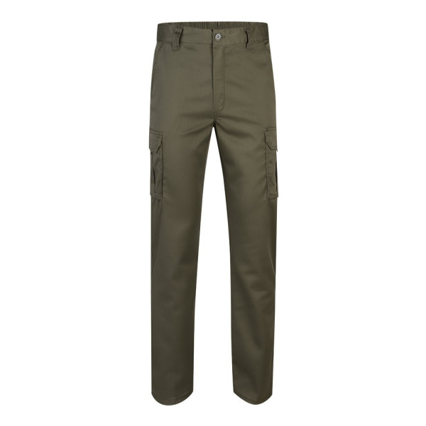 Multi-Pocket-Stretchhose (240 g/m²) aus Baumwolle (46 %), EME (38 %) und Polyester (16 %). Schmale Passform, elastischer Bund und sechs Taschen (2 französische Taschen, 2 seitliche Zwickeltaschen und 2 Gesäßzwickeltaschen). Größe: 34, 36, 38, 40, 42, 44, 46, 48, 50, 52, 54, 56, 58, 60, 62, 64