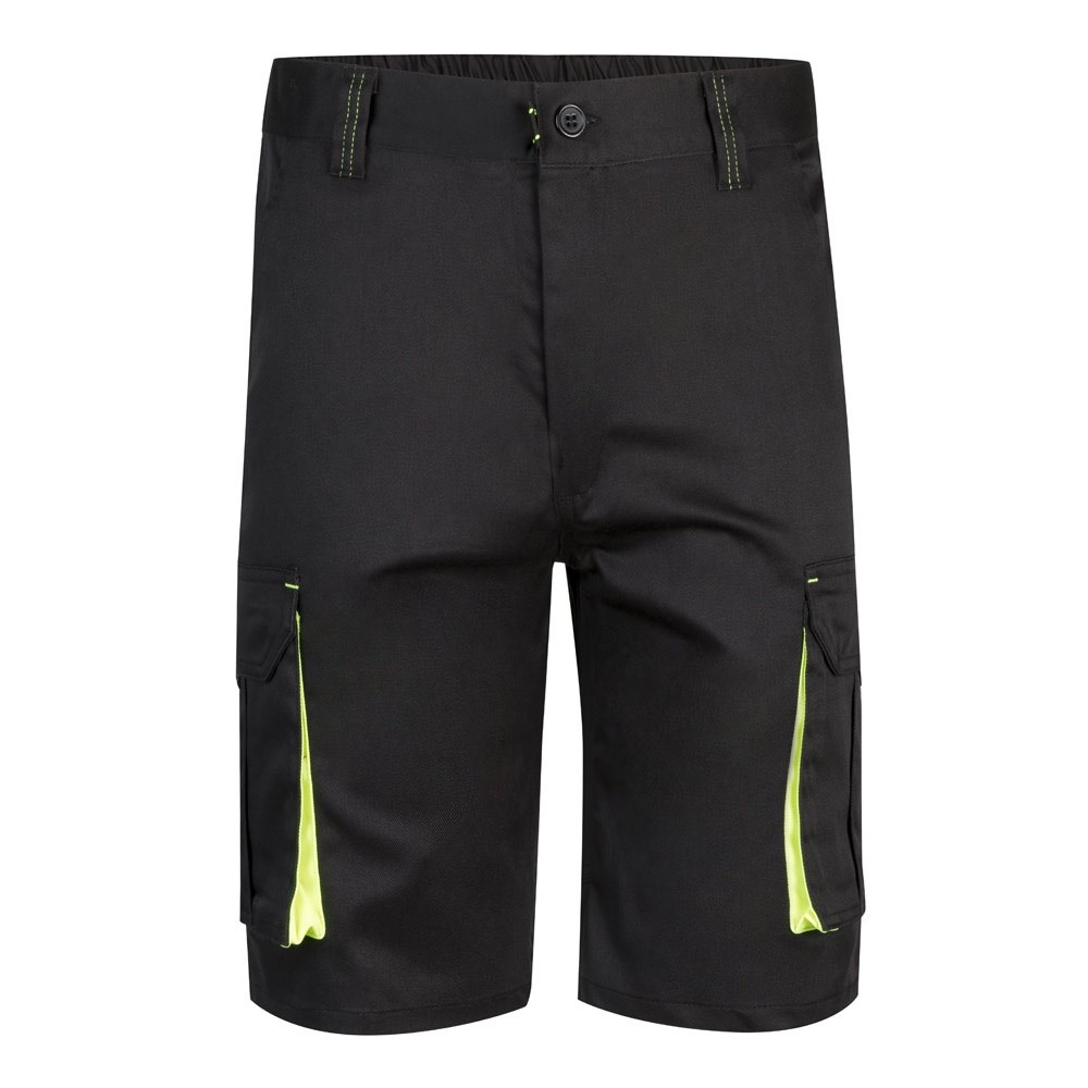 VL HEMERA. Zweifarbige Stretch-Bermudashorts mit mehreren Taschen (240 g/m²) aus Baumwolle (46 %), EME (38 %) und Polyester (16 %)