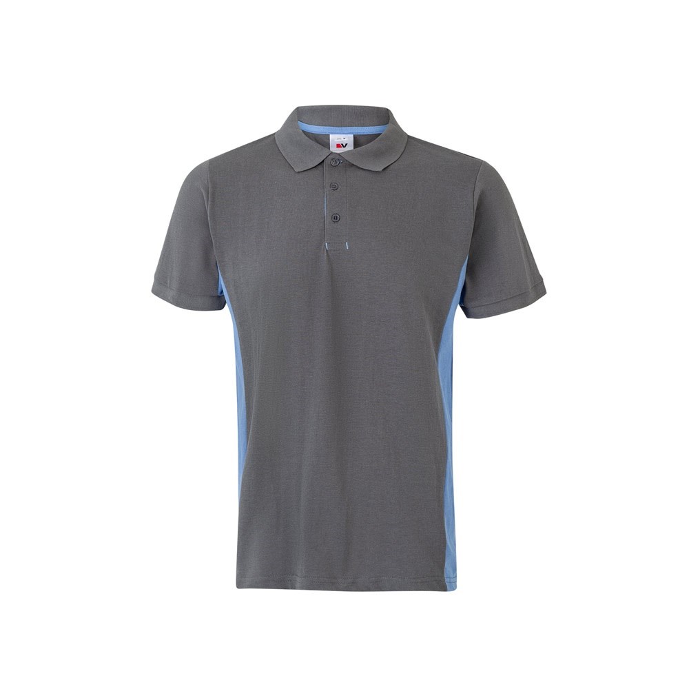 Two-tone piqué polo shirt (180g/m²), short sleeve, in cotton (60%) and polyester (40%). Mit Knopfverschluss, geripptem Kragen und unteren Ärmeln. Seiten und Knopfleiste in Kontrastfarbe. Größe: XS, S, M, L, XL, 2XL, 3XL
