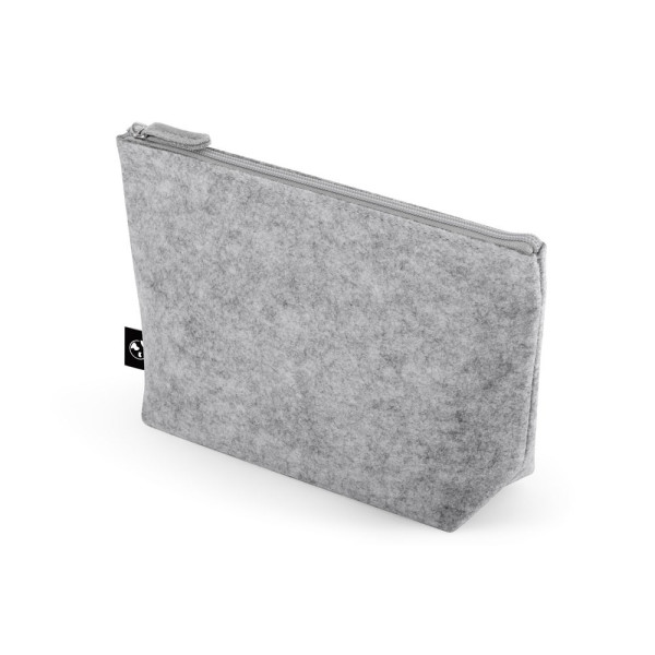 Geräumige, multifunktionelle Tasche aus Recyclingfilz (100 % rPET) mit Reißverschluss. 250 x 140 x 70 mm