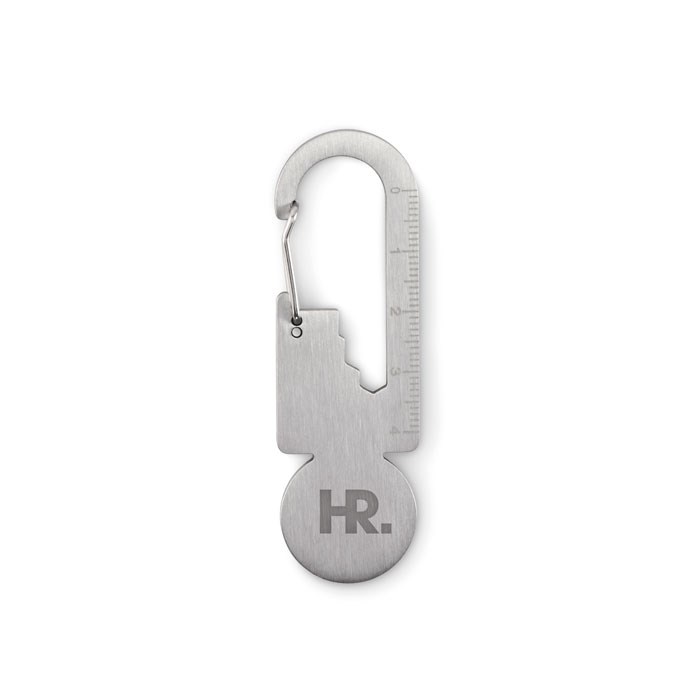 Multifunktionaler Einkaufswagenchip aus recyceltem Edelstahl ( 90% recycelter Edelstahl und 10% Edelstahl). Inkl. Kapselheber, Lineal und Sechskantschlüssel 5 ,5mm, 7mm und 8mm.