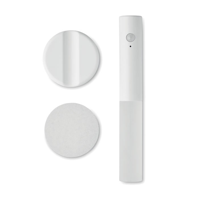 Leuchte mit Bewegungssensor. Ideal für Kleiderschrank, Flur oder überall, wo zusätzliches Licht benötigt wird. ABS und Acryl. Inkl. 300mAh-Akku und Ladekabel. Der magnetische Halter kann mit mitgeliefertem 3M-Aufkleber an der Wand befestigt werden. Auch als Taschenlampe verwendbar.