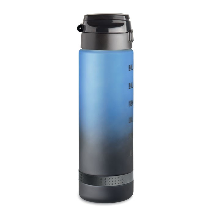 Sport-Trinkflasche aus RPET. Motivierende Zeitmarkierung, einhändig zu öffnender Flip-Top-Deckel, Sicherheitsverschluss und Henkel. Füllmenge: 1L.
