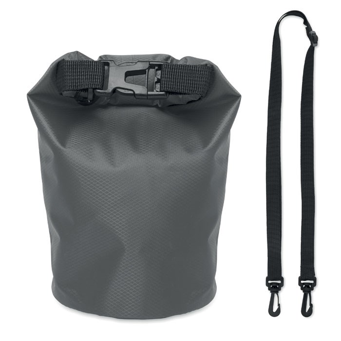 Wasserfester Beutel (IPX6) aus 210T RPET Ripstop. Rollschließmechanismus mit Steckverschluss. Füllmenge: 1,5L.
