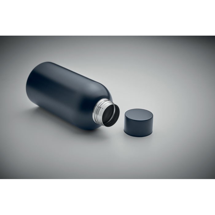 Einwandige Flasche aus recyceltem Edelstahl (90 % recycelter Edelstahl und 10 % Edelstahl). Auslaufsicher. Füllmenge 500 ml. Da der einwandige Flasche die Hitze nach Außen leiten kann, kann der Artikel heiß werden.