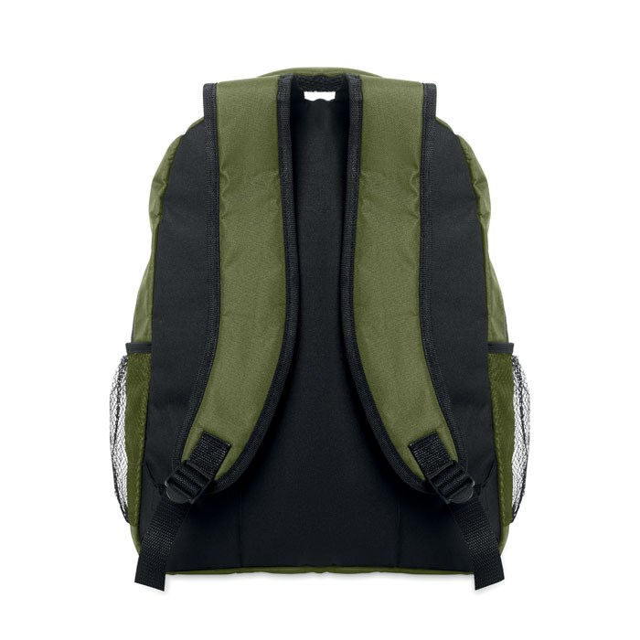 15'' Laptop-Rucksack aus 600D RPET-Polyester mit gepolstertem Laptopfach. Beidseitige Netztaschen und Reißverschlusstasche vorne.