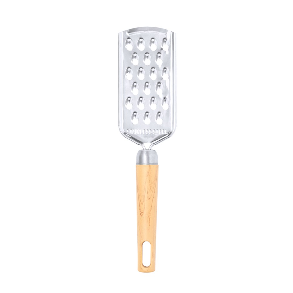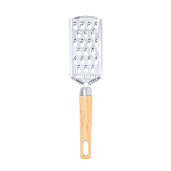 Handreibe aus Edelstahl. Es verfügt über einen ergonomischen Griff aus PP mit einer Öffnung zum einfachen Aufhängen. Präsentiert in einer recycelten Papiertüte.