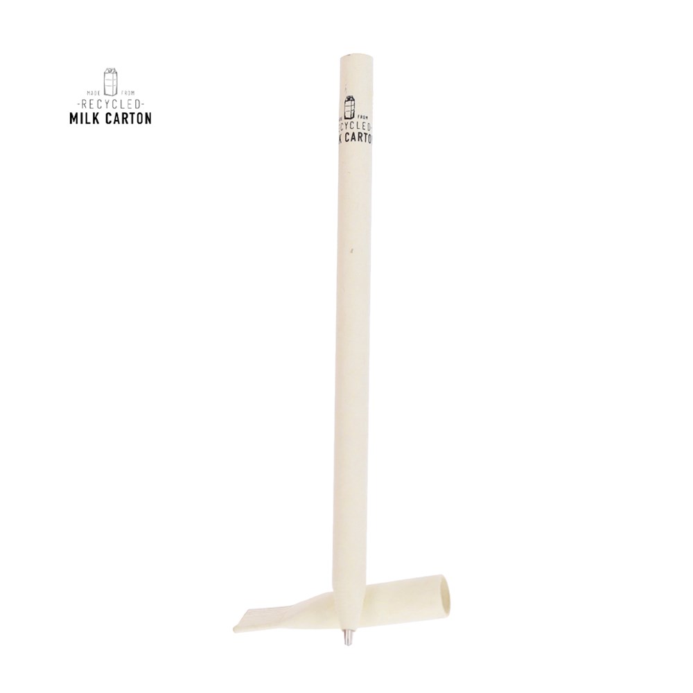 Kugelschreiber mit einem Gehäuse, das aus recycelten Milchkartons und weißen Akzenten besteht.... mehr