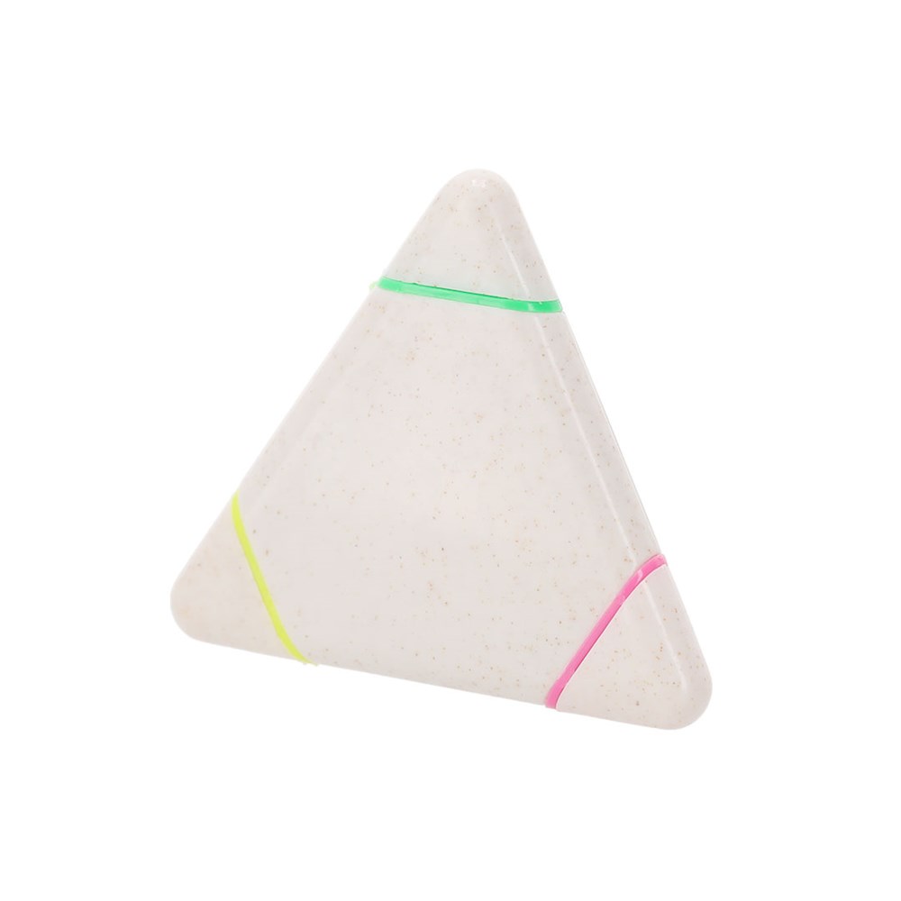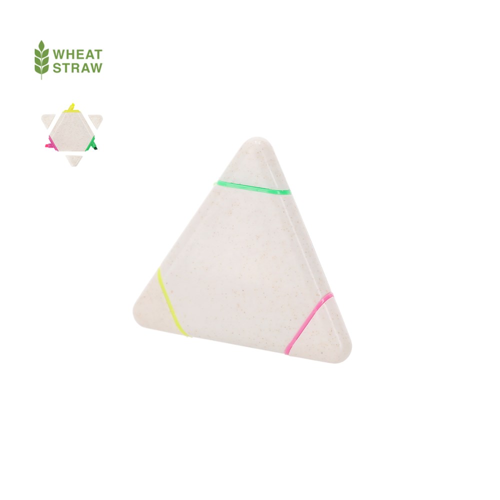 Origineller fluoreszierender Marker in drei Farben aus Weizenstroh. Mit dreieckigem Gehäuse in glatter, glänzender Ausführung, besonders zum farbigen Markieren entworfen. Mit opaken Kappen.Weizenstroh fördert die Verwendung natürlicher Rohstoffe und reduziert so die Schadstoffemissionen.