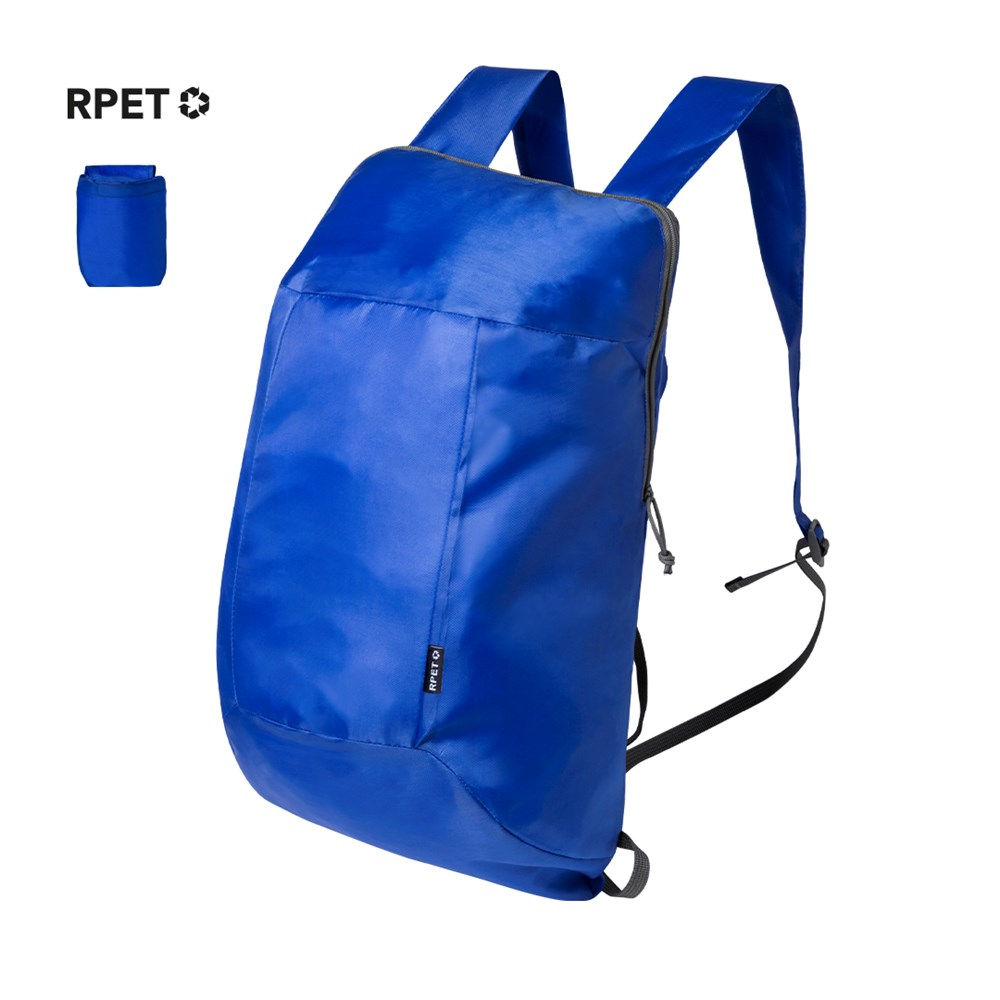 Faltbarer Rucksack aus RPET 210D. Mit Reißverschluss, verstärkten Ecken, verstellbaren Schultergurten. RPET-Kennzeichnung am äußeren Etikett.Das RPET-Material wird aus recyceltem Kunststoff hergestellt, um die Wiederverwendung von Plastikabfällen zu fördern und zur Nachhaltigkeit des Planeten beizutragen.