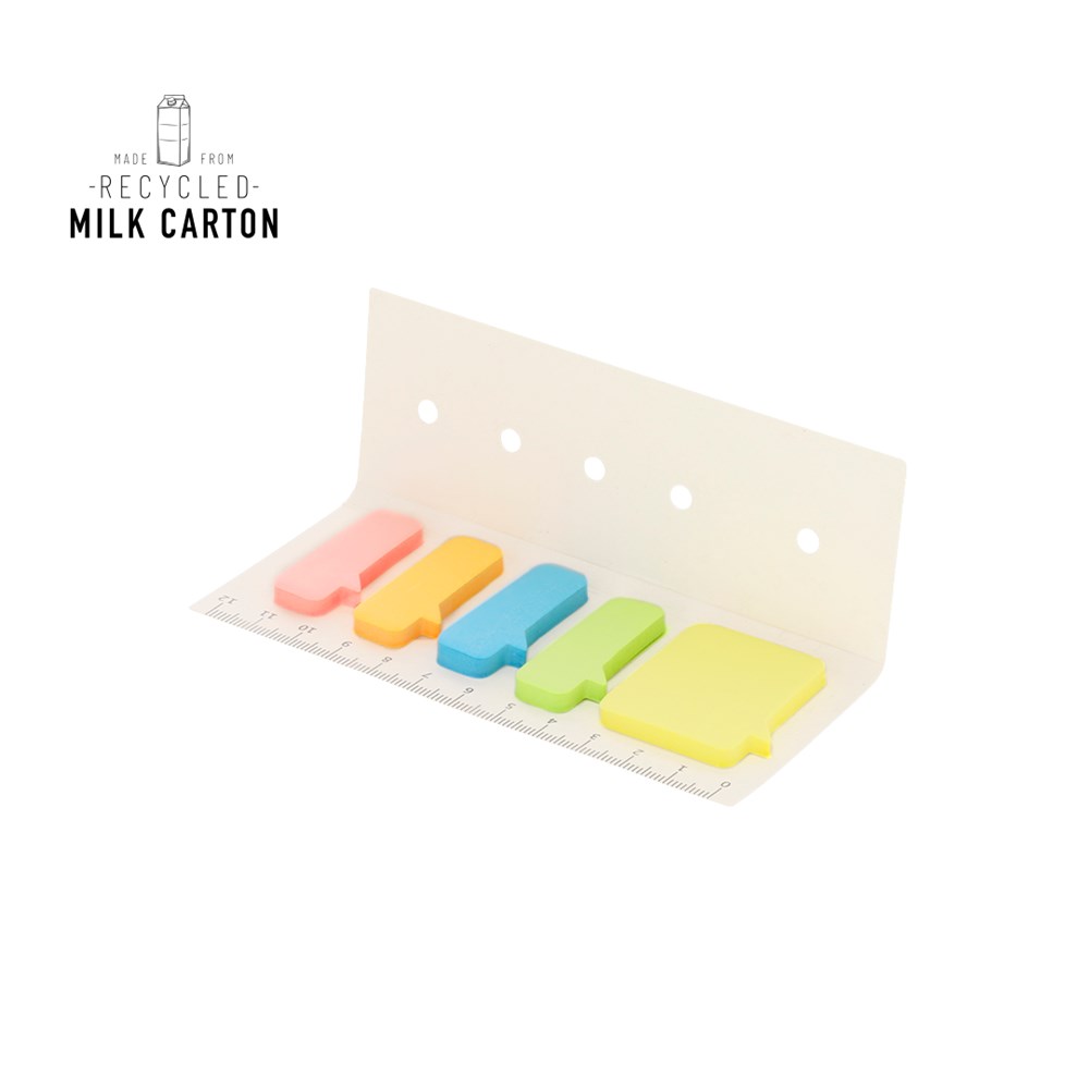 Klebeblock aus recyceltem Milchkarton. Beinhaltet: 50 mittlere Haftnotizen und 200 mini Haftnotizen mit Design. Enthält integrierte praktische 12 cm lange Linie. Mit „Recycled Milk Carton“-Kennzeichnung.Die Milchkartons bestehen größtenteils aus Karton und Aluminium. Während des Recyclingprozesses werden die unterschiedlichen Materialien des Behälters getrennt, um wiederverwendet und neu eingesetzt zu werden, und tragen somit dazu bei, den unendlichen Weg der Kreislaufwirtschaft zu beschreiten. Dieses Material zeichnet sich durch einen hohen Recyclinggrad, sowie Leichtigkeit und Widerstandsfähigkeit aus.