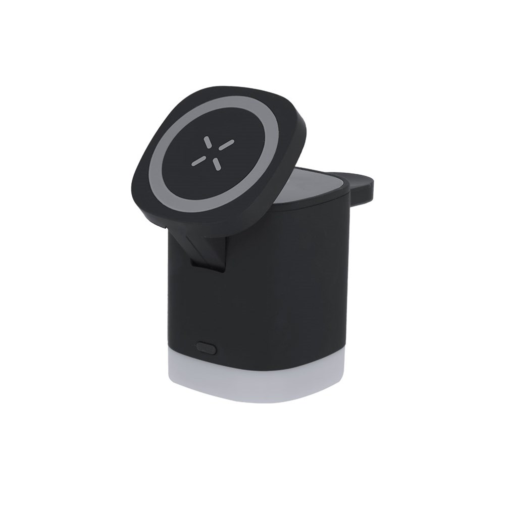 Magnetisches drahtloses Ladegerät 3-in-1 von 15W, hergestellt aus recyceltem ABS (RABS). Entwickelt für die gleichzeitige Ladefunktion des Smartphones, der Ohrstöpsel und der Smartwatch.Verfügt über eine integrierte Lampe in der Basis mit 2 einstellbaren Lichtmodi in Weiß.Typ-C-Kabel enthalten. Ein All-in-One-Gerät: faltbar, tragbar, vielseitig und funktional im Design.RAB ist ein hochgradig recycelbarer Kunststoff von großer Festigkeit und mit zahlreichen Anwendungen, der es zu einer umweltfreundlichen Lösung macht.Hergestellt gemäß den RoHS-Standards und in Übereinstimmung mit den folgenden Sicherheitsanforderungen:Schutzsystem gegen Überhitzung.Schutzsystem gegen Überladung.Verriegelungssystem zur Vermeidung von Kurzschlüssen.