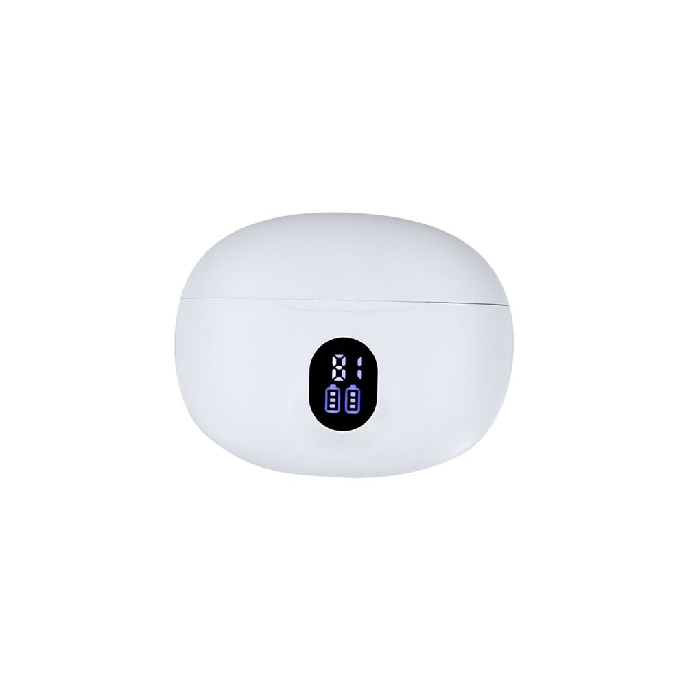 In-Ear-Kopfhörer mit Bluetooth® 5.4 Verbindung, Freisprechfunktion und Geräuschunterdrückung. Ergonomisches Design, enthalten Tasten mit integrierter Touch-Steuerung im Ohrhörer, mit passendem Ladebasis und externer Batterieanzeige pro Ohrhörer. Integrierte Batterie von 230 mAh. Bedienungsanleitung in Spanisch und Englisch.