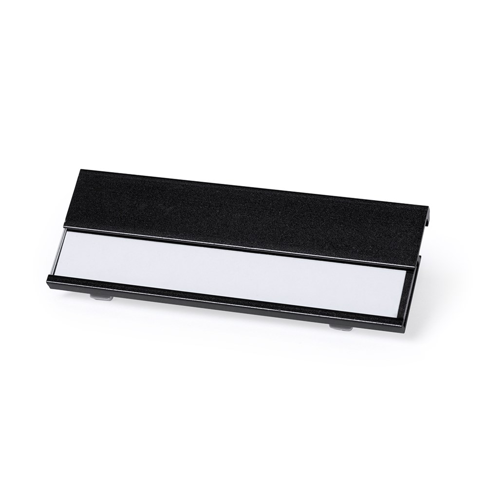 Aluminium-Namensschild in lebendigen Farben mit Befestigungsnadel auf der Rückseite. mehr