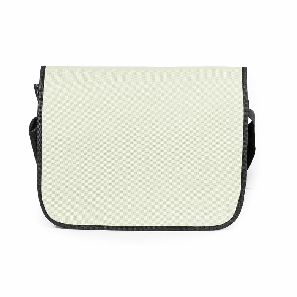 Non-Woven-Dokumententasche aus robustem Faservlies mit Klettverschlussklappe und eleganter schwarzer Paspel. Mit innenfächern für Stifte.