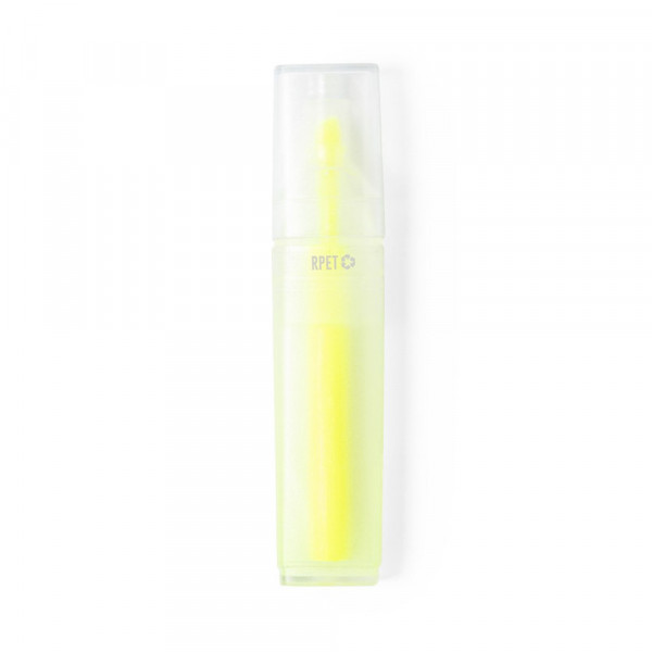 Linie "Natur" Textmarker aus RPET, hergestellt aus recyceltem Kunststoff, um die Wiederverwendung von Kunststoffabfällen zu fördern und die Nachhaltigkeit des Planeten zu unterstützen. Mit transparentem Körper und passender Kappe. Mit aufgedrucktem RPET-Logo auf dem Marker.