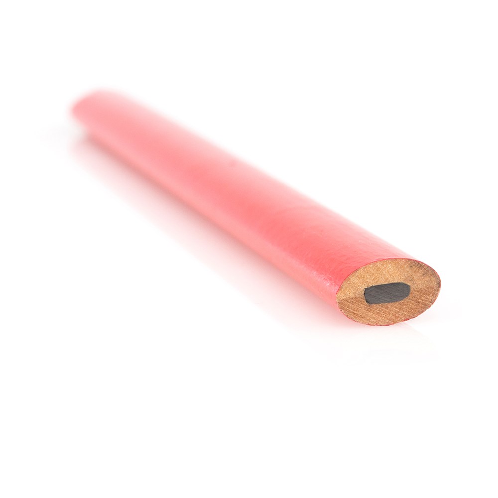 Holz-Schreinersstift mit glänzende Oberfläche. Mit abgeflachtem Griff und in einer Vielzahl von Farben erhältlich. Schwarze Mine und ungespitzte Spitze.