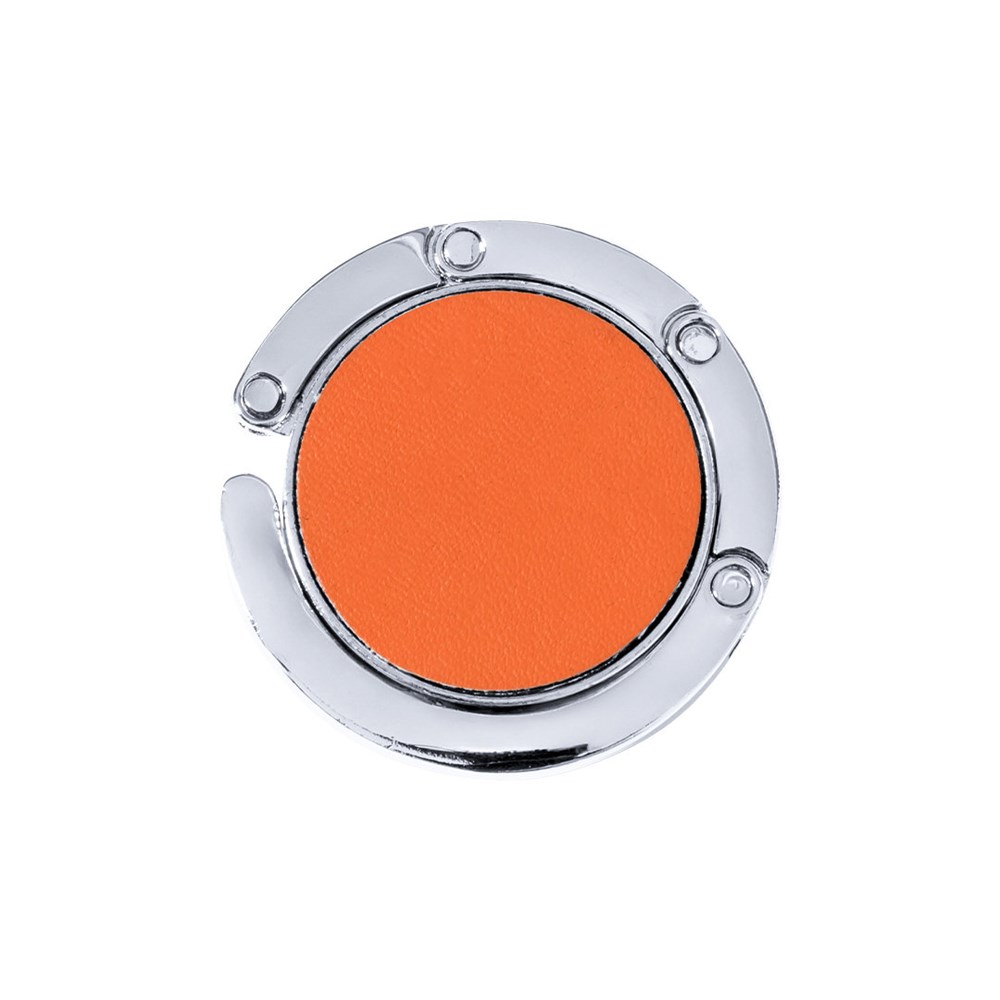 Klappbarer Handtaschenhalter aus Metall mit Kunstledereinsatz in leuchtenden Farben. Präsentiert in einer individuellen Box mit Stanzung im Inneren.
