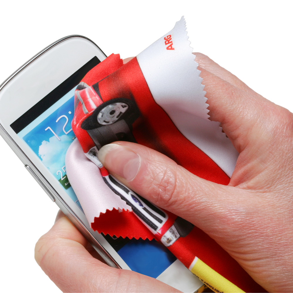 zur Reinigung von Bildschirmen, optischen Linsen und Brillen,ca. 220 g/qm, inkl. individuellem 4-farbigen, 1-seitigen Digitaldruck nach CMYK. Keine Lagerware, auftragsbezogene Fertigung