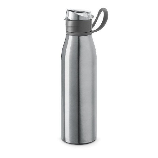 Trinkflasche aus Aluminium (650 mL). Der Griff am Deckel ermöglicht den bequemen und praktischen Transport. ø66 x 250 mm