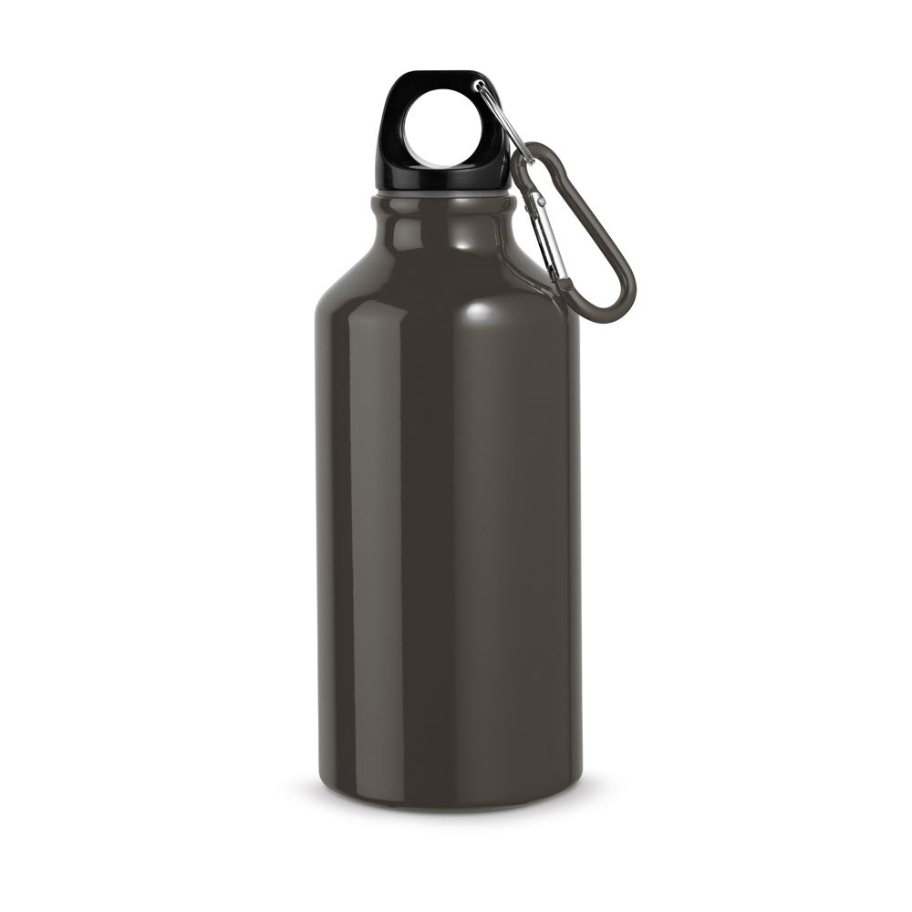 Trinkflasche aus Aluminium (400 mL) mit Karabiner. Erhältlich in unterschiedlichen Farben. ø66 x 176 mm