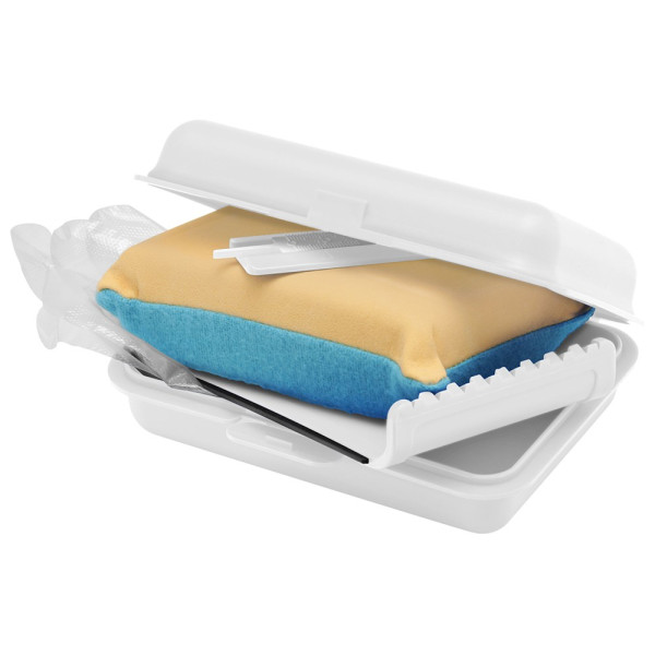 1 Eiskratzer, 1 Autoschwamm, 1 Reifenprofiltiefenmesser, 1 Paar Einweghandschuhe in wiederverschließbarer Kunststoffbox. Farbkombinationen möglich.