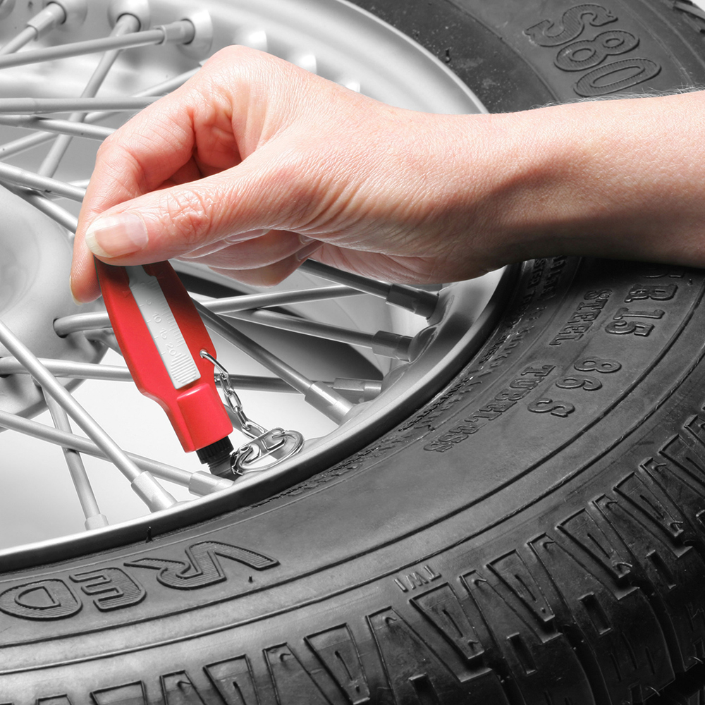 Reifenprofiltiefenmesser mit Ventilkappendreher