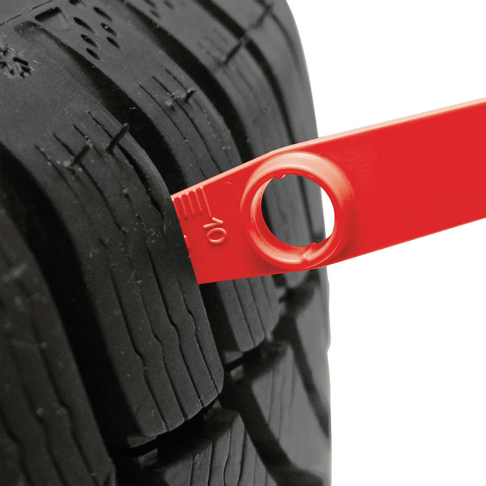mit Reifenprofiltiefenmessern und Ventilkappendrehern