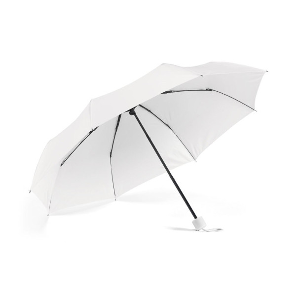 Taschenschirm aus 190T Pongé mit manueller Öffnung. Dieser Regenschirm hat ein 3-schrittiges Schliesssystem, ist leicht und praktisch. Geliefert in einer Hülle. Regenschirm: ø960 x 240 mm | Hülle: ø40 x 215 mm