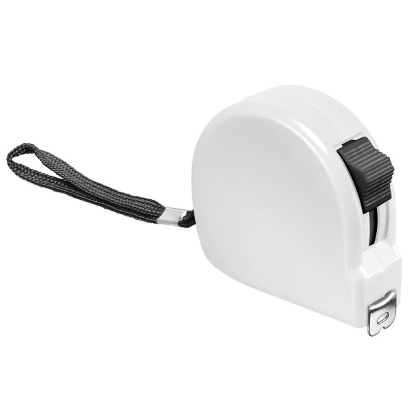 2 m, mit cm- und Inch-Einteilung, Feststeller, Rückholfunktion, Gürtelclip und HandschlaufeDoming möglich.