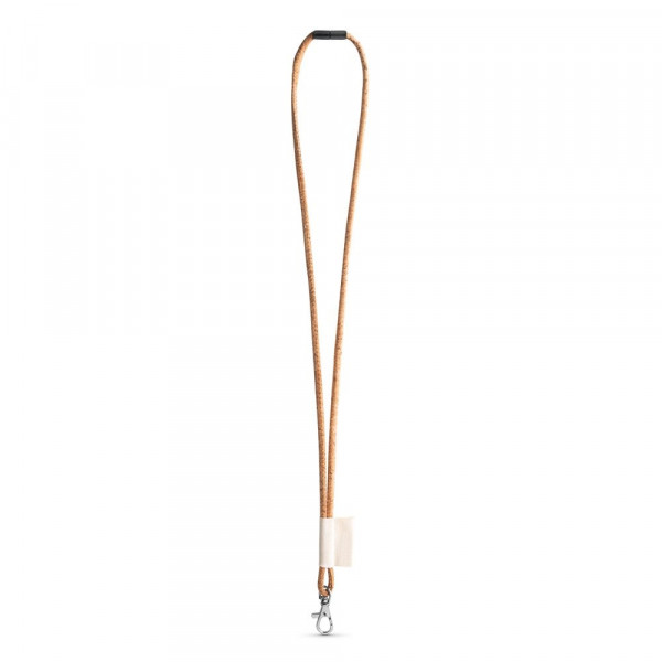 Veredelbares Lanyard aus Kork. Das lange Kork Lanyard enthält folgendes Zubehör und Extras: Baumwolletikett 43x15 mm, Karabiner 9 mm und Sicherheitsverschluss. Die aufgeführten Preise beinhalten einen einfarbigen/einseitigen Siebdruck. ø5 x 470 mm