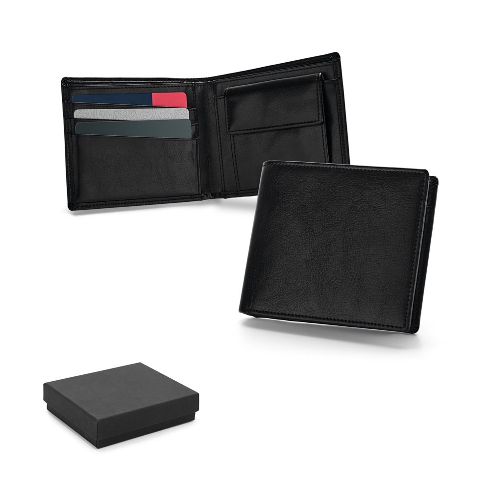 Brieftasche aus Leder mit RFID-Schutz, einem Münzfach, einem Geldscheinfach und Fächer für 9 Kreditkarten. Geliefert in einer Geschenkschachtel. 110 x 92 x 13 mm | Schachtel: 130 x 109 x 24 mm