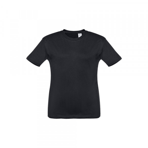 Kinder T-Shirt aus 100% Strickjersey und Baumwolle (150g/m²), unisex mit geripptem Kragen in 1x1 Ripp, Jersey-Verstärkung und Doppelnaht an den Ärmeln und Saum. Größen: 2, 4, 6, 8, 10, 12