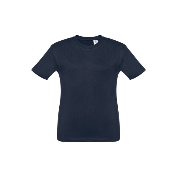 Kinder T-Shirt aus 100% Strickjersey und Baumwolle (190g/m²) mit kardiertem Baumwollfaden, unisex, mit geripptem Kragen in 1x1 Ripp, Jersey-Verstärkung und Doppelnaht an den Ärmeln und Saum. Größen: 2, 4, 6, 8, 10, 12