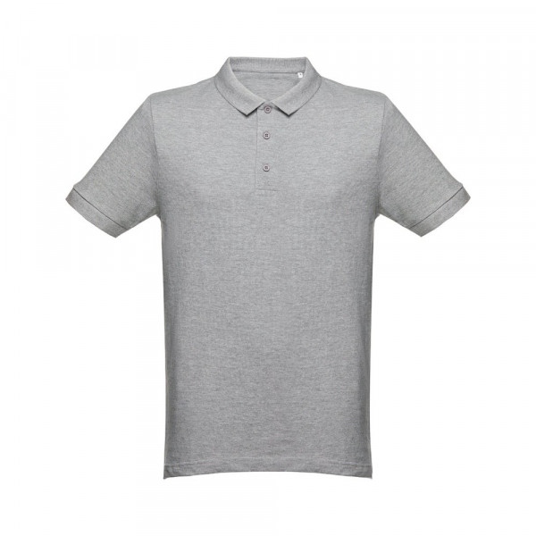 Herren Poloshirt aus Piqué Stoff 100% kardierter Baumwolle (240g/m²) mit geripptem Kragen und Ärmel, einem Verstärkungsband aus Piqué Stoff am Kragen, verstärkte Knopfleiste mit 3 farblich abgestimmten Knöpfen und einem Ersatzknopf an der Innennaht. Unten mit seitlichen Öffnungen. Bei der Farbe 183 bestehend aus 85% Baumwolle und 15% Viskose. Etikett ist abreissbar. Größen: S, M, L, XL, XXL