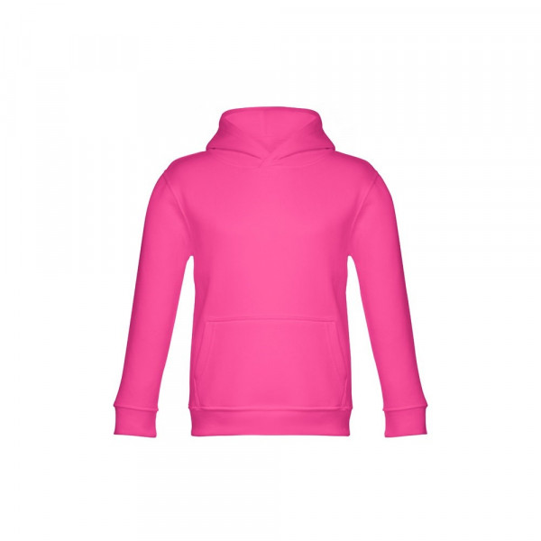 Kinder Sweatshirt aus 50% Baumwolle und 50% Polyester (320g/m²), unisex mit Kapuze in Jersey. Innen kardiert, Ripp 1x1 an Ärmelbündchen und Bund und einer Kängurutasche. Kapuze in Übereinstimmung mit den Sicherheitsstandards der Europäischen Union. Größen: 2, 4, 6, 8, 10, 12