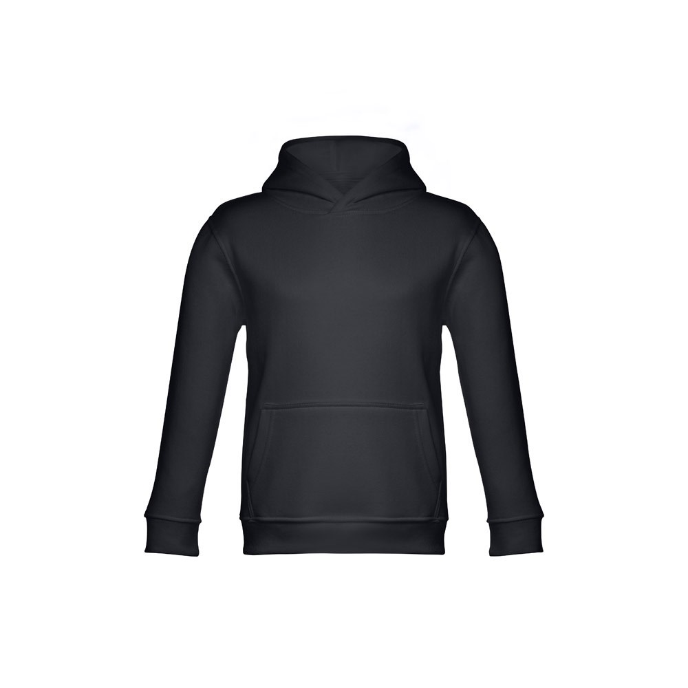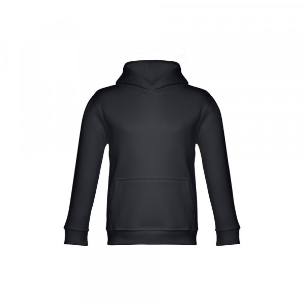 Kinder Sweatshirt aus 50% Baumwolle und 50% Polyester (320g/m²), unisex mit Kapuze in Jersey. Innen kardiert, Ripp 1x1 an Ärmelbündchen und Bund und einer Kängurutasche. Kapuze in Übereinstimmung mit den Sicherheitsstandards der Europäischen Union. Größen: 2, 4, 6, 8, 10, 12