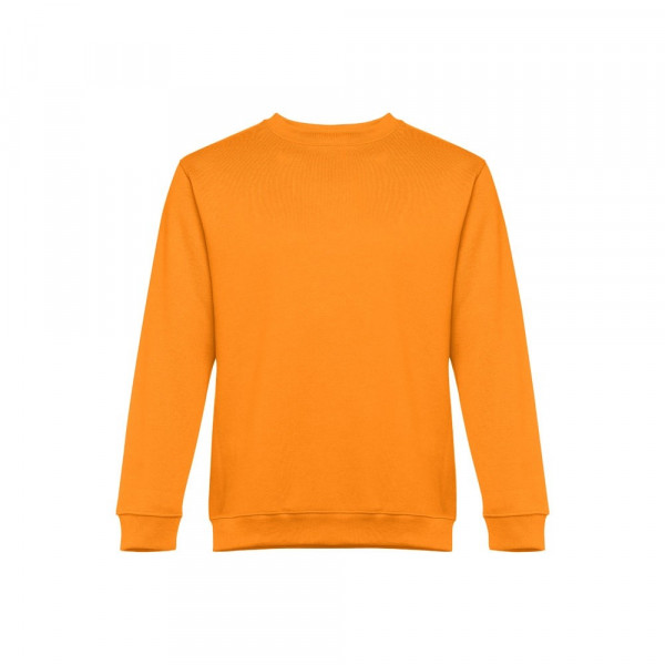 Sweatshirt aus 50% Baumwolle und 50% Polyester (300g/m²), unisex. Innen kardiert, 1x1 Ripp, Bund am Ärmel und Saum, Doppelnaht und Verstärkungsband am Kragen. Größen: S, M, L, XL, XXL
