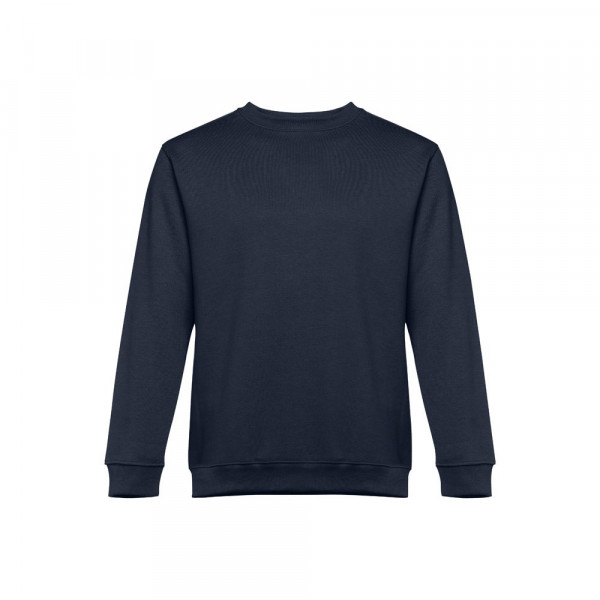 Sweatshirt aus 50% Baumwolle und 50% Polyester (300g/m²), unisex. Innen kardiert, 1x1 Ripp, Bund am Ärmel und Saum, Doppelnaht und Verstärkungsband am Kragen. Größen: S, M, L, XL, XXL
