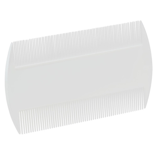 doppelseitig, mit feinen und etwas breiteren Zinken, zur schonenden Entfernung von Flöhen, Läusen und Nissen bei Mensch und Tier